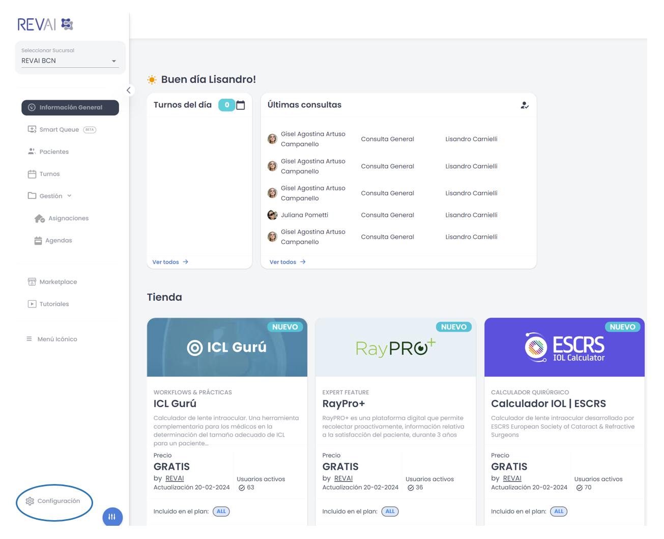 Una vez que ingresaste en tu usuario de REVAI, dirígete al menú que aparece a la izquierda y selecciona el módulo de “Configuración”.