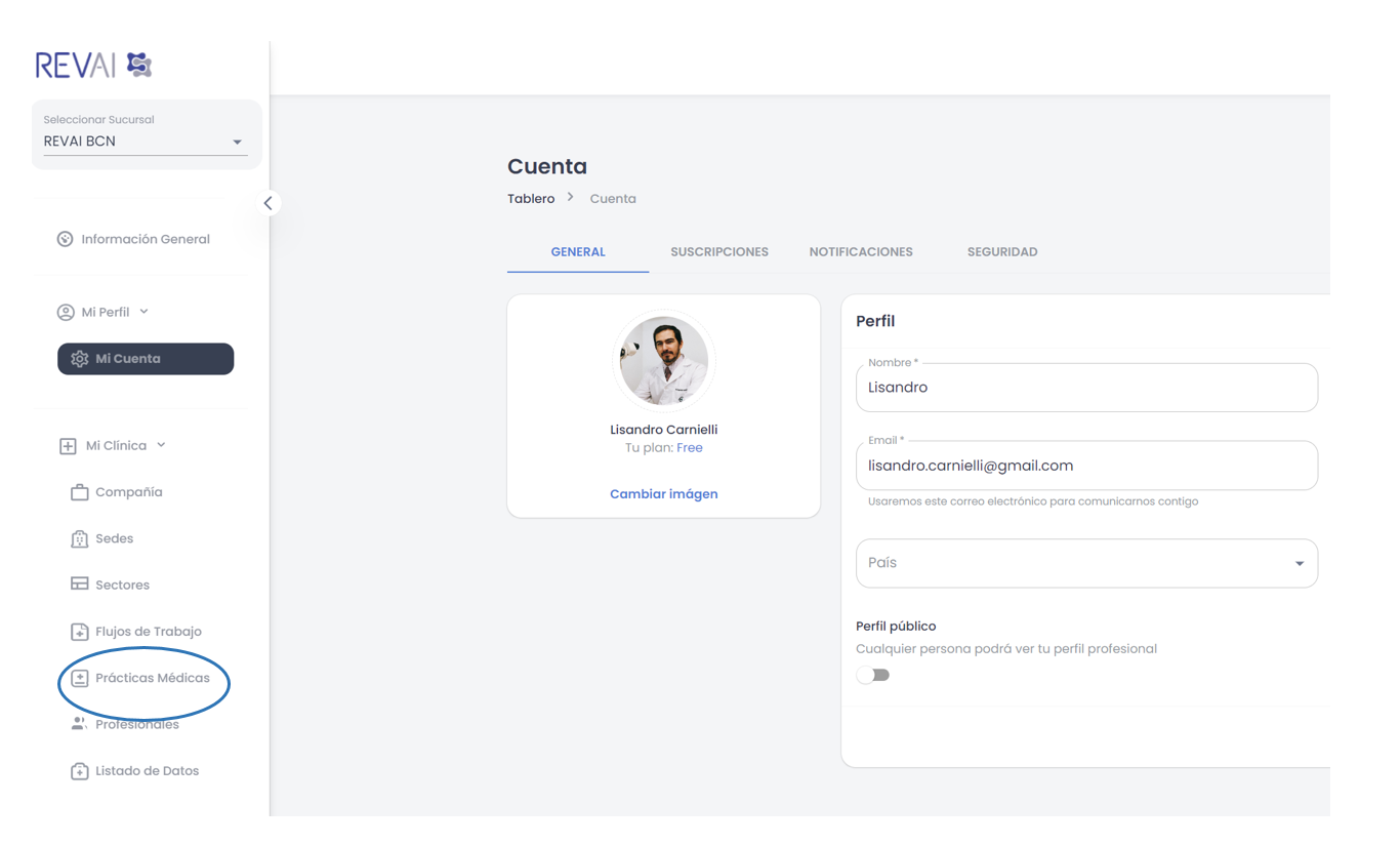 Deberás seleccionar en la barra lateral izquierda la opción “Prácticas Médicas”.
