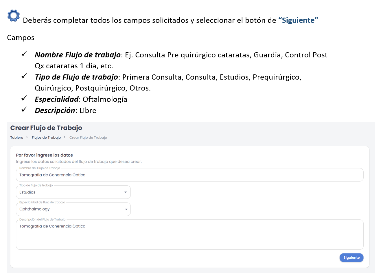 Se denomina “Flujo de Trabajo" o "Workflow” al conjunto de prácticas que se le va a realizar a un paciente en función a determinado turno. Por ejemplo: